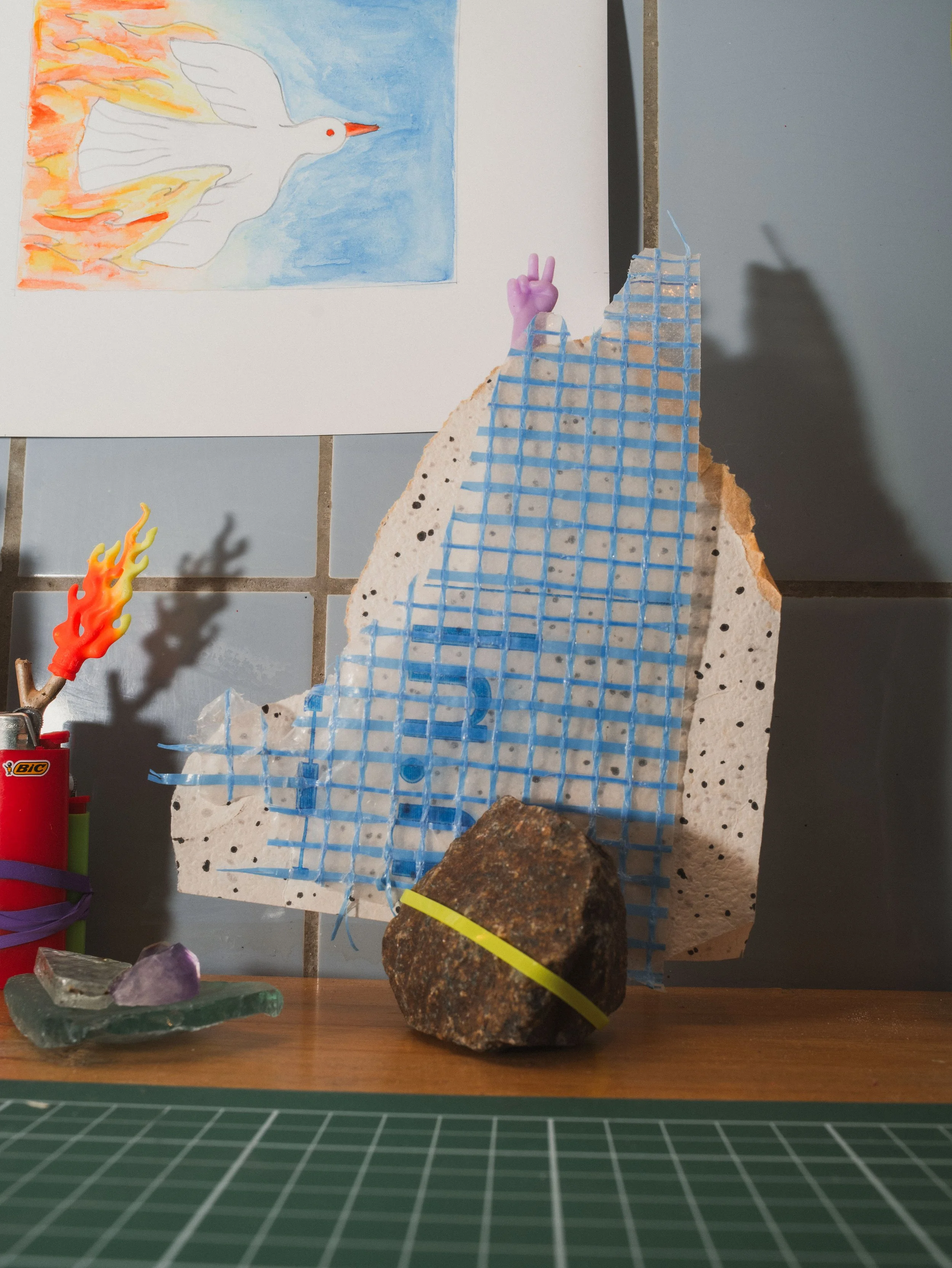Andy's style is very DIY, and you can see traces of it all over the apartment. Cut up strips of paper and scribbled on pages lie strewn everywhere. A giant photocopy machine stands proudly in his living room, boasting about how often Andy uses it.